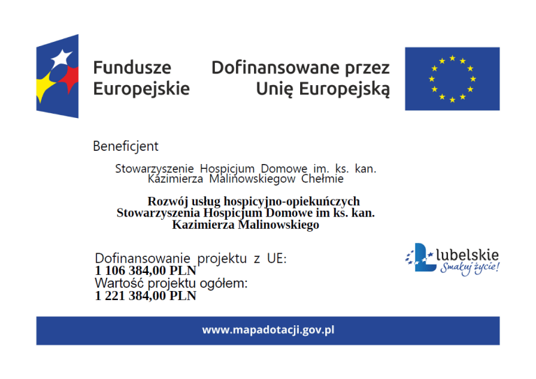 Stowarzyszenie Hospicjum Domowe im. ks. kan. Kazimierza Malinowskiego w Chełmie zrzesza ludzi dobrej woli, pragnących nieść pomoc ludziom chorym, znajdującym się w terminalnej fazie choroby – głównie nowotworowej – oraz ich rodzinom.